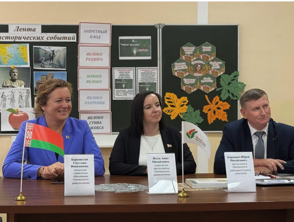 Практической частью мероприятия стала диалоговая площадка, на которой присутствовали: Язель Анна Михайловна, заместитель председателя Ошмянского райисполкома; Барковская Светлана Николаевна, начальник управления образования; Карпович Юрий Михайлович, председатель Ошмянского районного Совета депутатов.