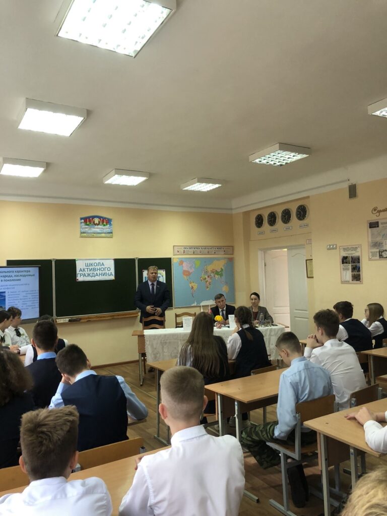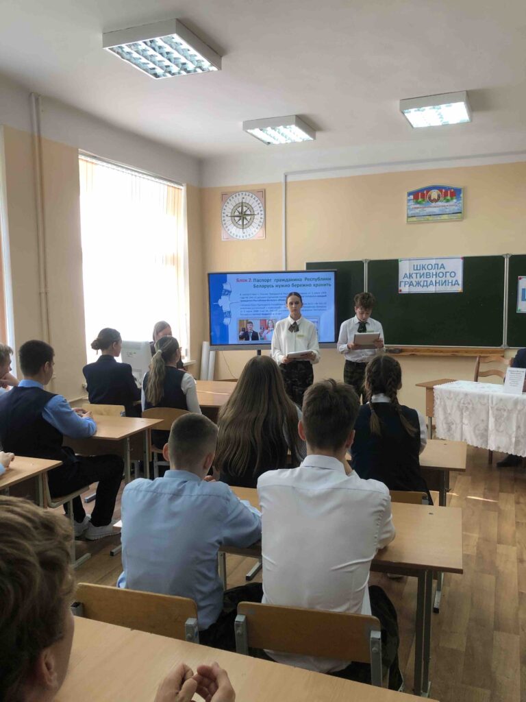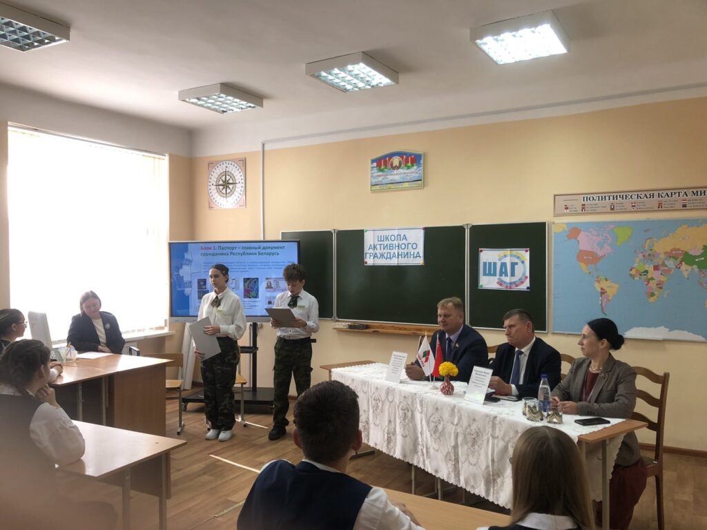 25 сентября с участием депутата Палаты представителей Национального собрания Республики Беларусь Виталия Николаевича Раковца и председателя Ошмянского районного Совета депутатов Юрия Михайловича Карповича прошел информационный час в рамках информационно-образовательного проекта «ШАГ: Школа Активного Гражданина» на тему «Быть достойным гражданином Республики Беларусь – быть преданным своей Родине». Встреча с представителями органов государственного управления прошла по следующим этапам: