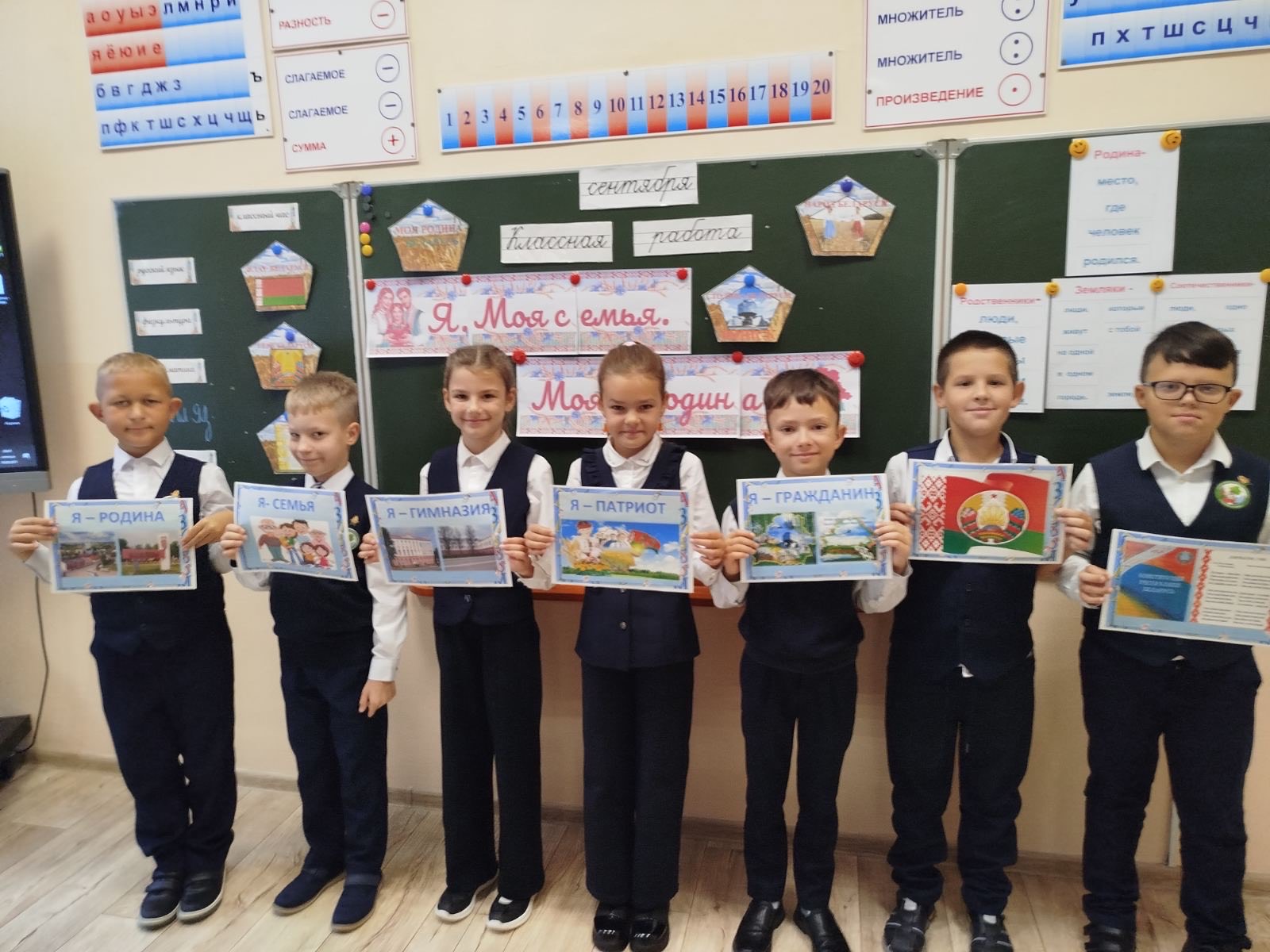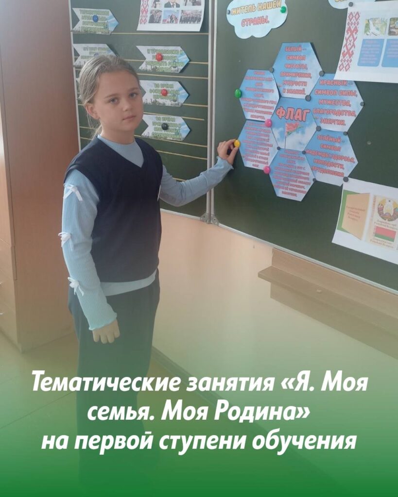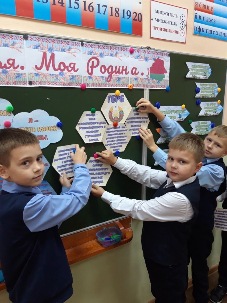 19 сентября в гимназии на первой ступени обучения прошли тематические занятия «Я. Моя семья. Моя Родина». Учащиеся углубили представления о понятиях «Родина», «Отечество», «государство», много узнали о государственных символах Республики Беларусь и нарисовали их.